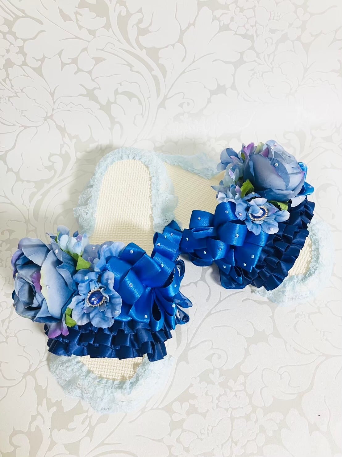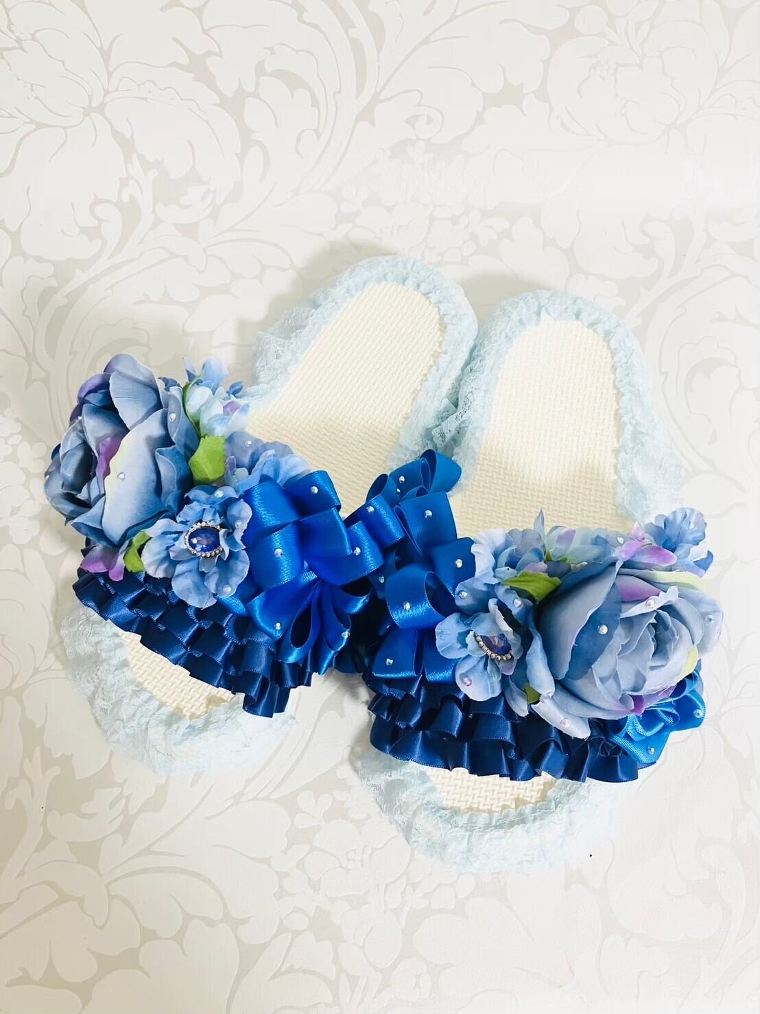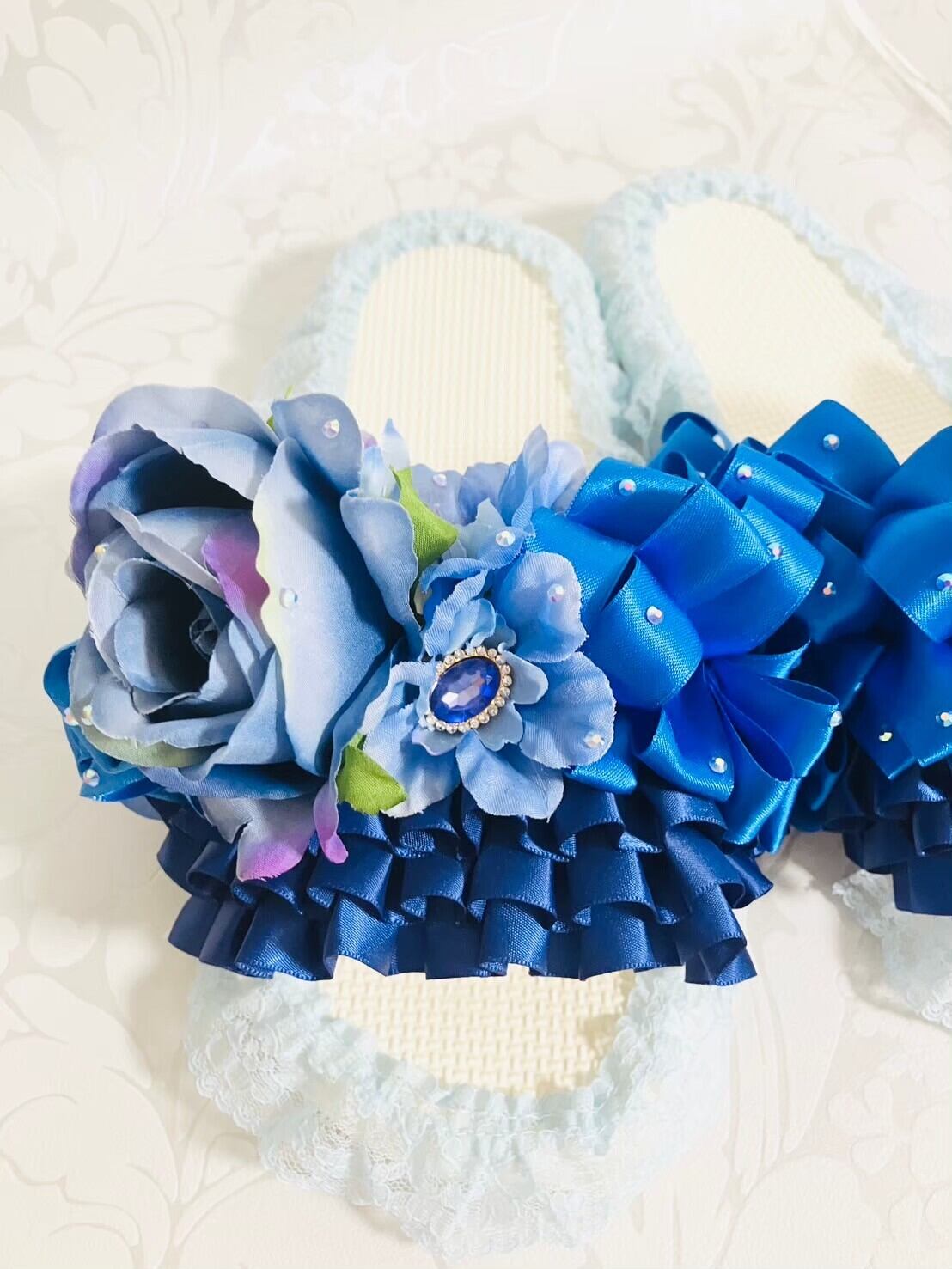 楽屋スリッパ ブルー ローズ レース | Couture Ayuko