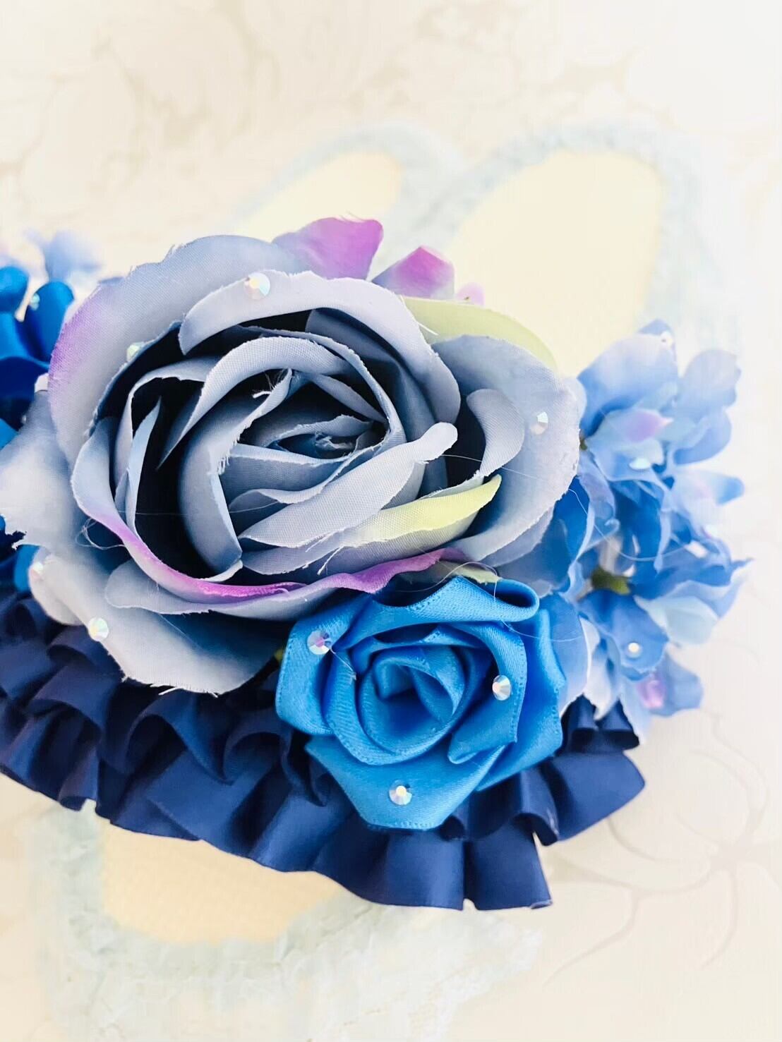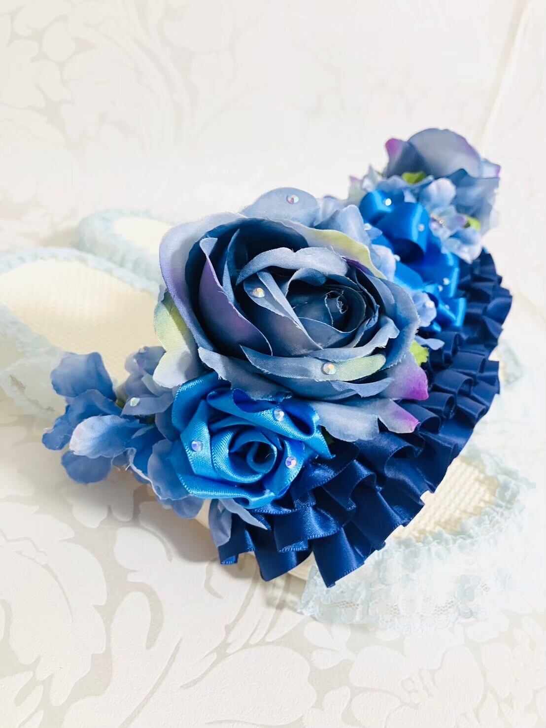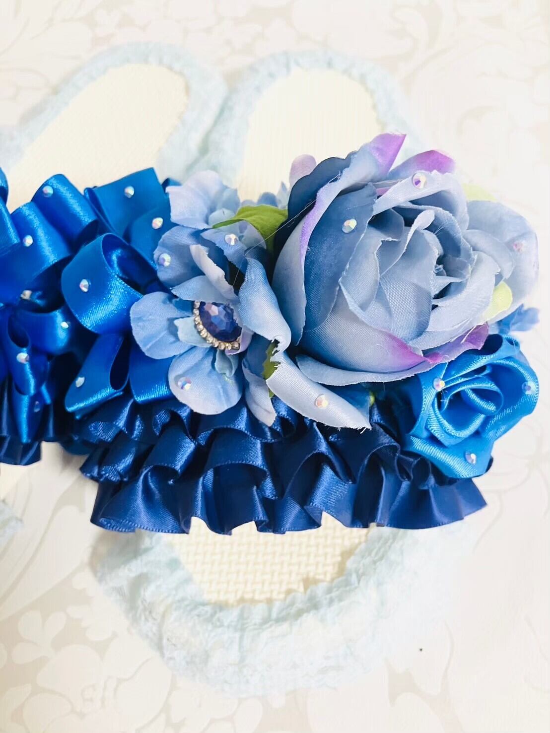 楽屋スリッパ ブルー ローズ レース | Couture Ayuko