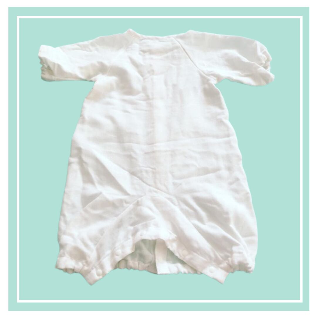 ダブルガーゼの2wayロンパースにレースのセレモニアルドレスと帽子の3点セットです。